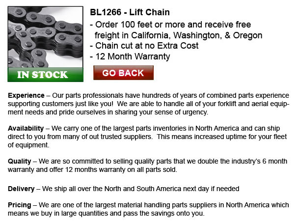 TOLL FREE: 1-888-633-0283 www.mastchain.com Email Us Lift Parts Express prides itself on the diversity and volume of parts we carry. Regardless of the model of lift truck you run, we have the parts you need. The cost savings we can offer will... About Us | ||