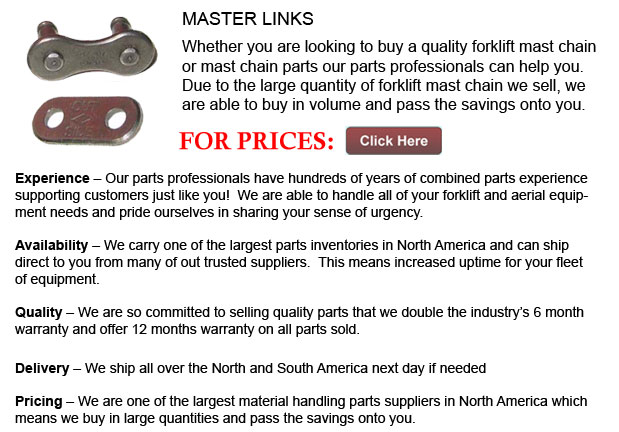 TOLL FREE: 1-888-633-0283 www.mastchain.com Email Us Lift Parts Express prides itself on the diversity and volume of parts we carry. Regardless of the model of lift truck you run, we have the parts you need. The cost savings we can offer will... About Us | ||
